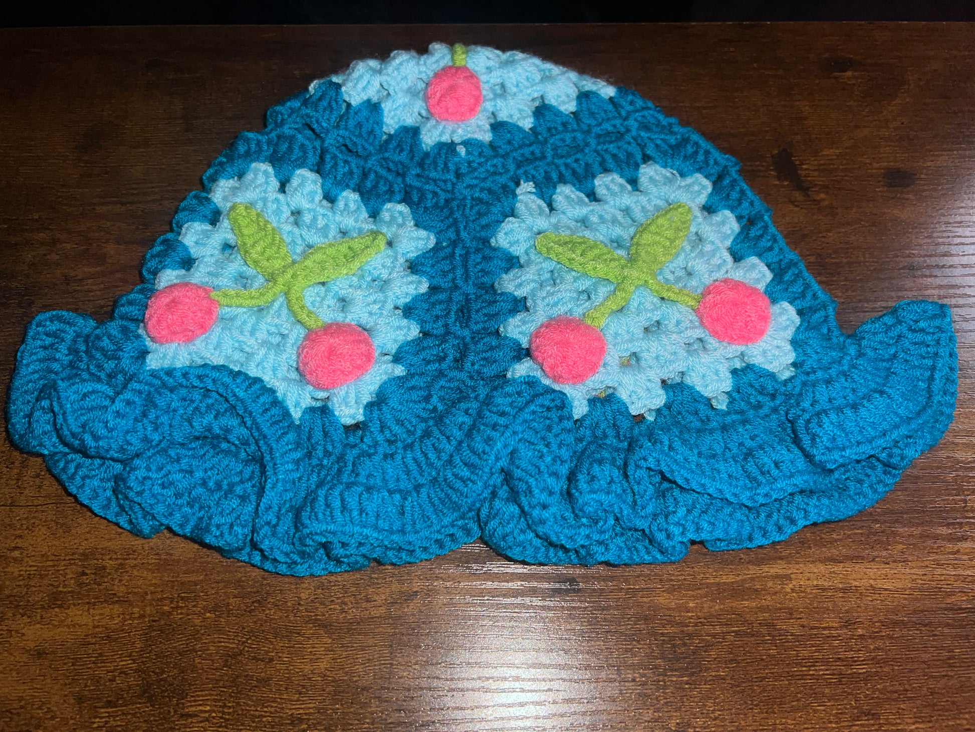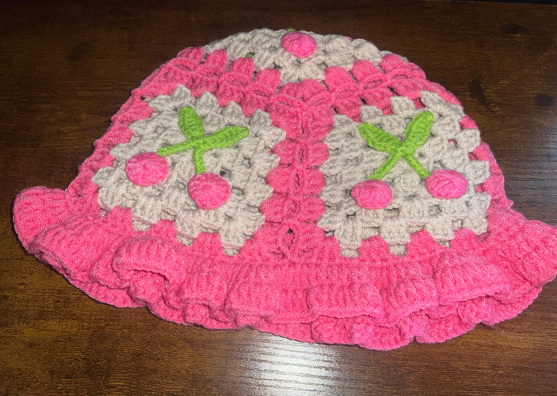 Trendy and colorful crotchet hats!!! Cherries and strawberries available!! Great prices!