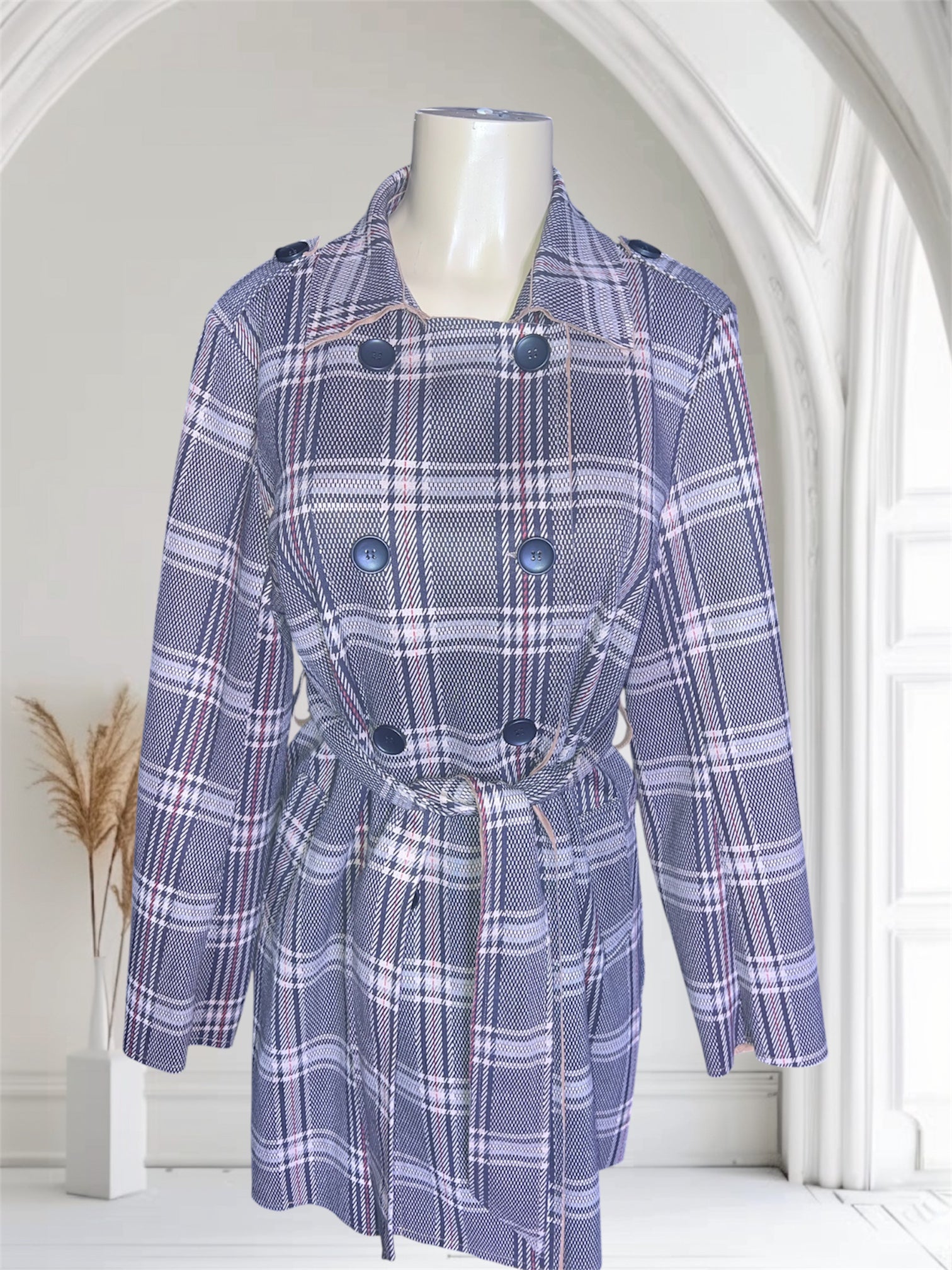 Expertly crafted with high quality stitching, this Solitaire double breasted coat is a must-have for any fashion-forward wardrobe. The lightweight design and built-in belt add a touch of elegance while providing a comfortable fit. Perfect for any occasion, this coat is a versatile and stylish choice for those seeking quality and style.