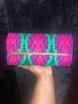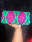 Fuchsia & green purse with gold chain and single button closure – bold and chic!”